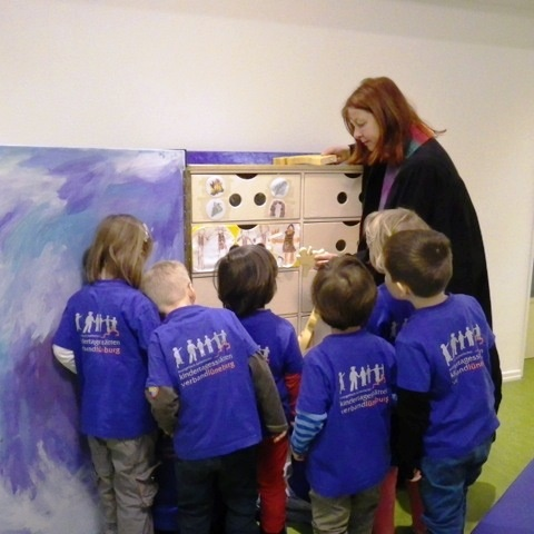 Die „Lebendige Bibel“ bei den KirchenmäusenWir haben zur Zeit ein großes Buch in unserer Kita: eine Bibel, die ein Schrank ist.